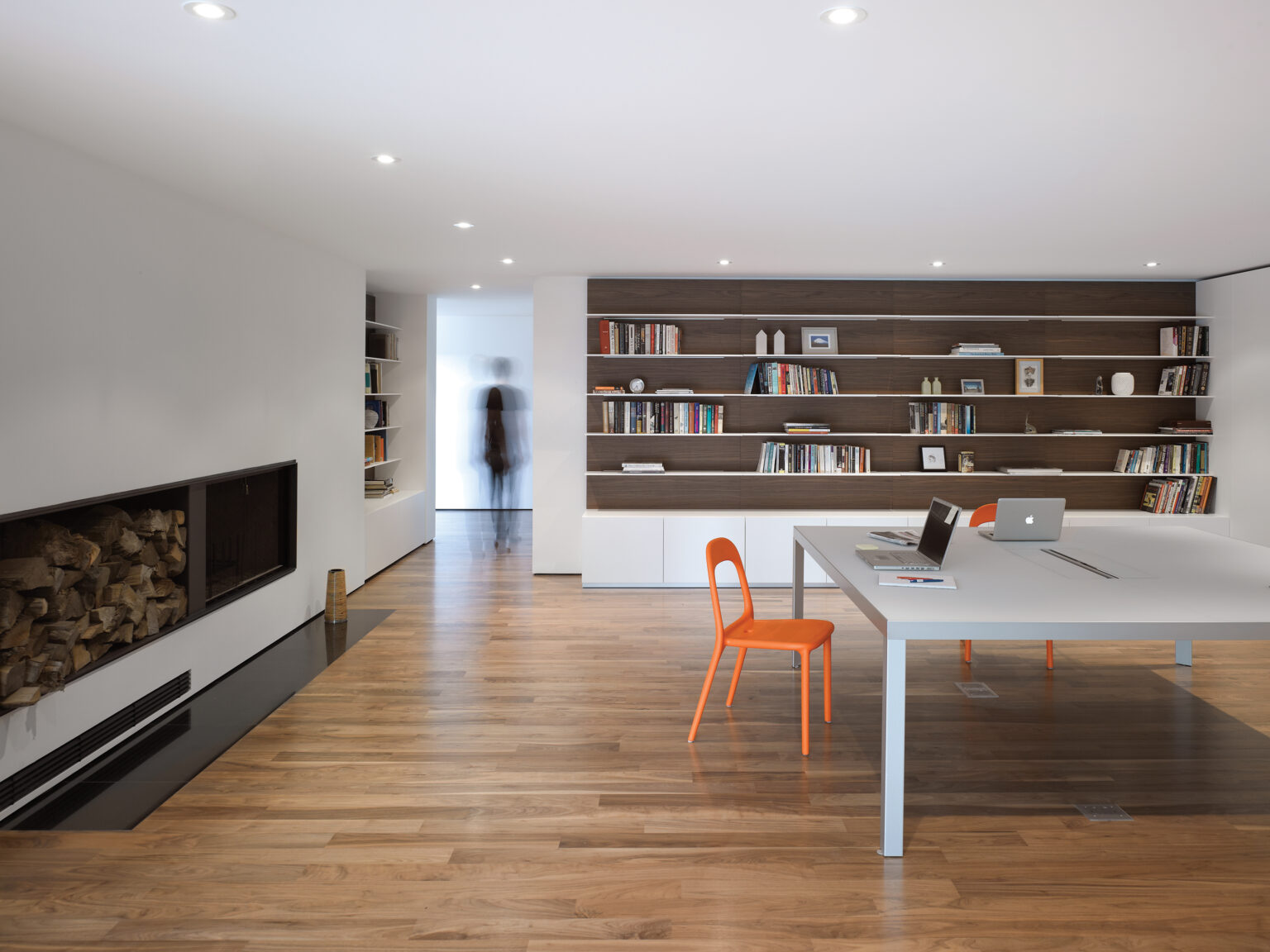 Orchestrating a very considered, but no-holds-barred reconstruction created a subtle, dramatic, and refined family home. The house is newly reoriented to the outdoors and is characterized by serene and sculptural forms. Subtle thresholds of layered spaces, balancing discrete enclosure with high and outward looking spaces, create an atmosphere of peacefulness and subtle drama.