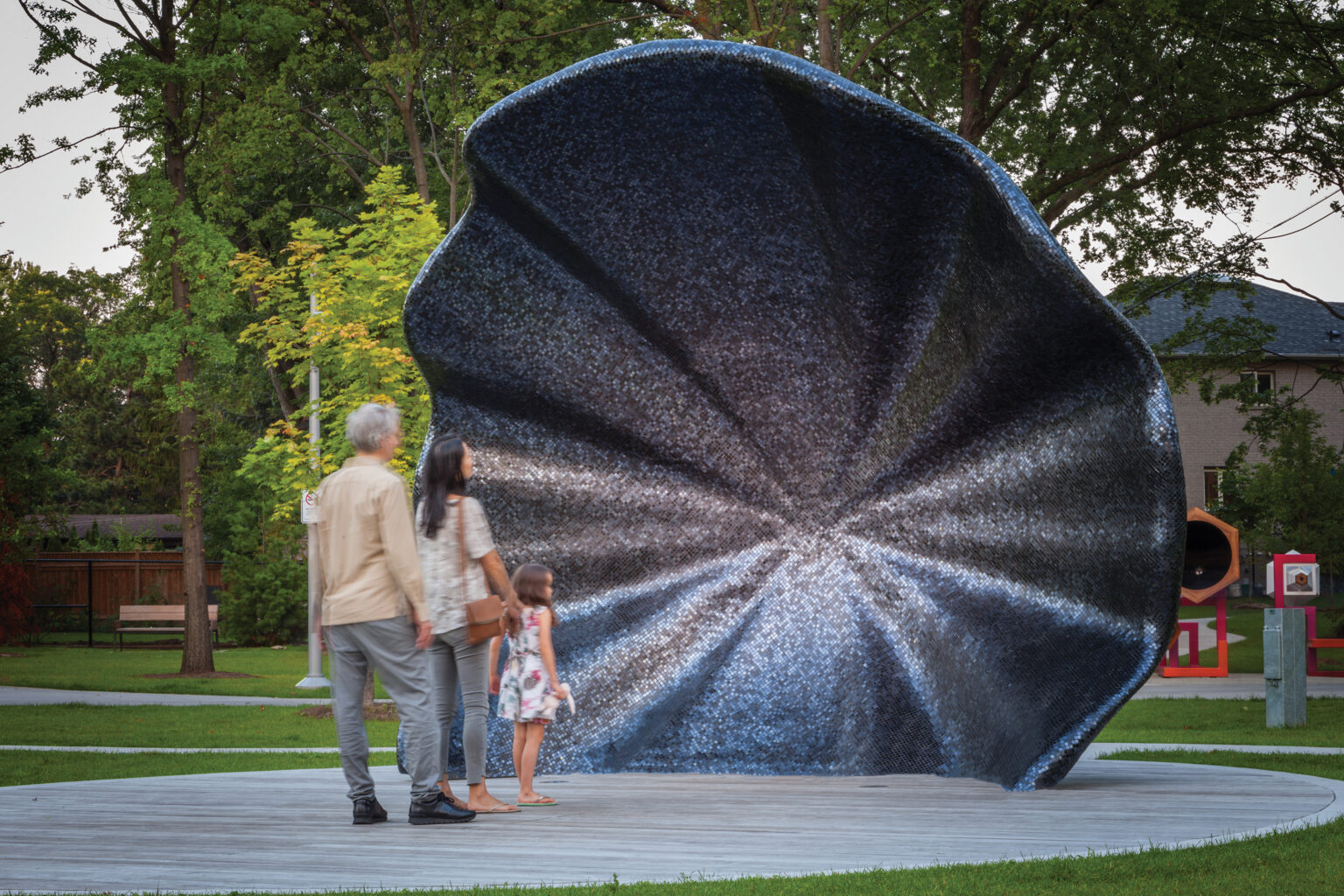 The sculpture transforms performance into shared experience, shaping a civic space where sound, gathering, and culture converge.